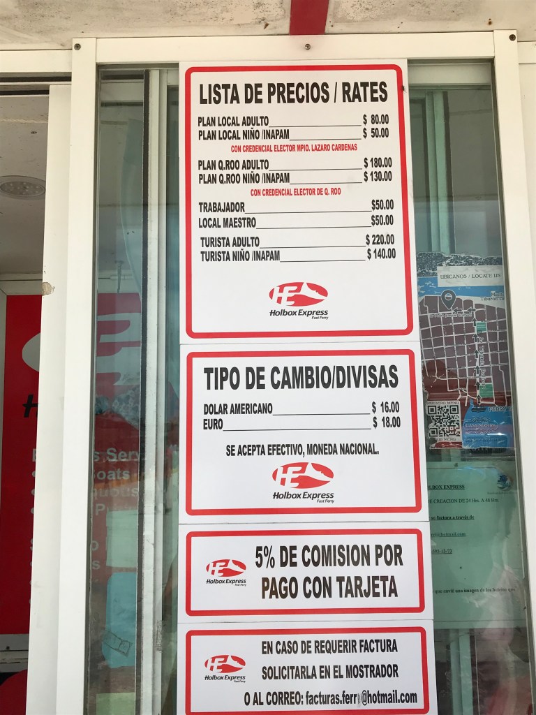 Total transportation cost Cancun-Holbox roundtrip for 2 persons (without ADO discount): 1632 MXN (aprox 70 EUR)